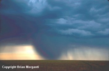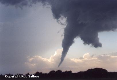 Last but not least is the tornado. Again, a tornado is defined as a violently rotating column of air in contact with the ground and a pendant from a thunderstorm (whether or not a condensation funnel is visible to the ground). Winds during a tornado can range from 40mph to 318mph depending on the scale of the tornado...meaning the winds can go from picking up small objects like newspapers, to destroying whole houses. It's important to remember the damage a tornado can cause, & to keep safety in mind always. If a tornado is approaching your location, drive away from the tornado at a 90 degree angle IF you are in open country, IF the location and motion of the tornado are known, and IF you are familiar with the local road network. If you are in an urban area and escape is not possible for some reason, abandon your vehicle and get into a reinforced building. If one is not available, get into a culvert or ditch, or other low lying spot in the ground (that is not flooded). |