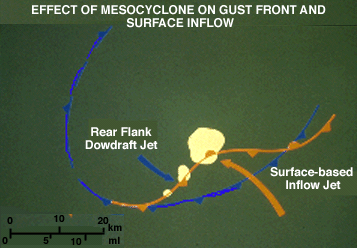 low-level airflow around a tornado. Note inflow wrapping