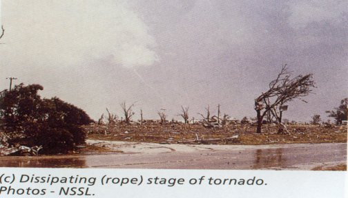 3 pictures illustrate the life cycle of the tornado. Tornado circulation